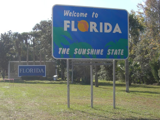 告別喬治亞的消防隊,努力往前騎。終於在將近十二點的時候,到達美國最西南的一州--Florida!!果然非常陽光,連那個O都用柳丁,可見盛產的程度。