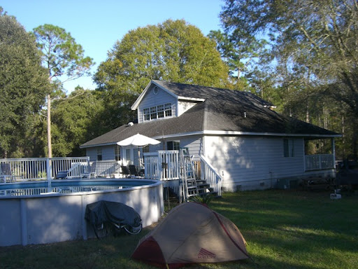在問過他爸之後,YA~於是我搭在他們家的游泳池旁邊。