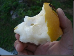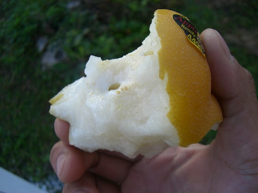 早餐吃完這個大水梨後出發,有枕頭果然很好睡,梨子很甜,可以再買。