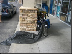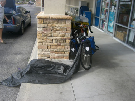 意思是,我中午左右看見一間中國餐廳,於是把蓋單車的雨布,帳篷內外帳,通通拿出