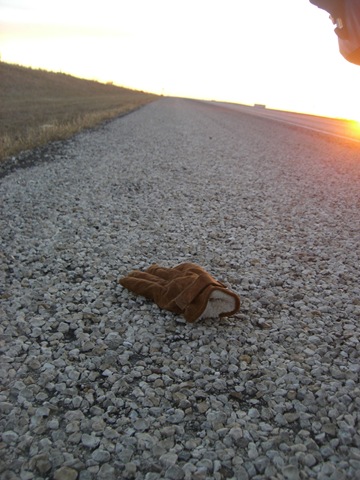 摸黑的結果,掉了一隻手套在路上,還好這次我發現的早。