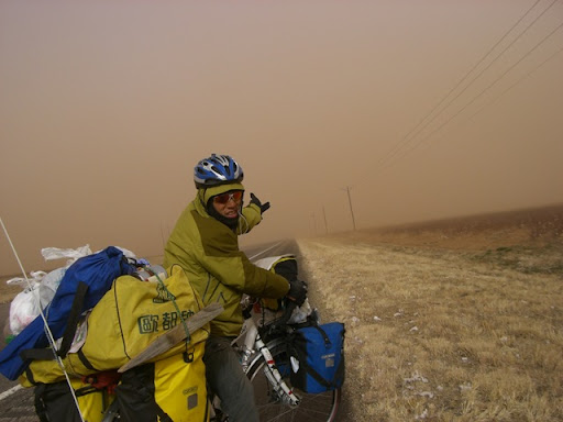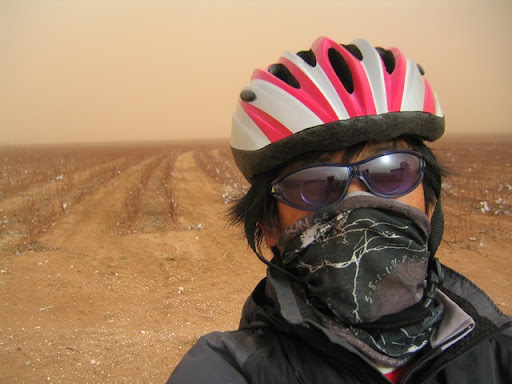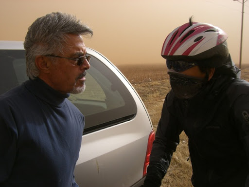 這時候,發現前面有台車停在路旁(因為沙塵能見度很低,我們騎著騎著"發現"有台車)