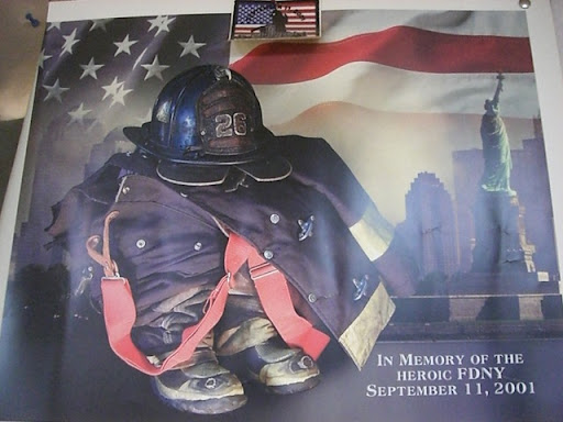 他們對911有很強的懷念,上面寫著我們永遠不會忘記這一天(343個消防隊員殉職)