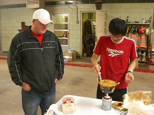 Kim做了一道泡菜魚湯 另一個隊員在炒黑胡椒牛肉做法士達