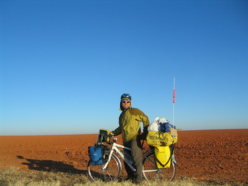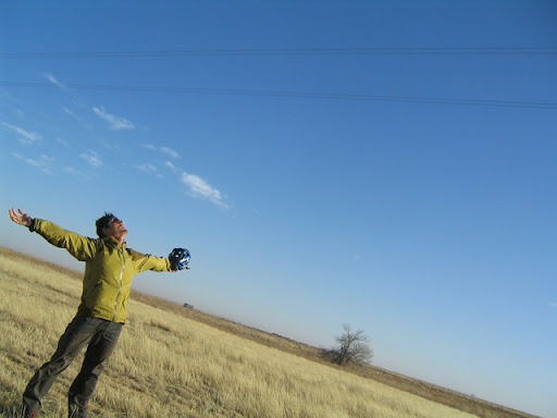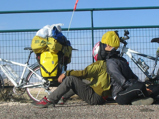大草原一望無際(同義詞就是沒地方可以躲風休息) 於是背靠背喘個五分鐘再上路