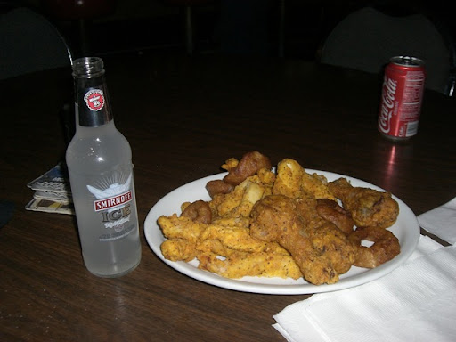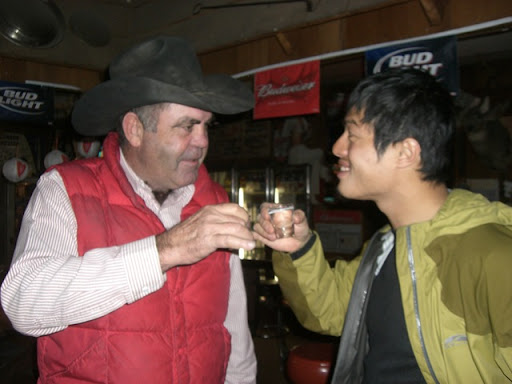 我們的晚餐,中午的Buffet老闆送我們的外帶炸雞。 一個西部牛仔請我們喝一杯,嚐起