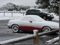 一整個早上都騎在白色世界,公路兩旁也是白雪,天空也飄雪加上雲層密布