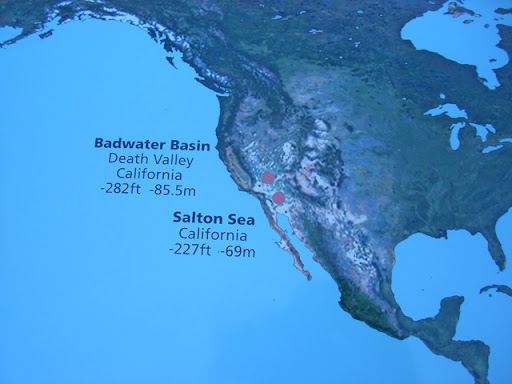 在中國當然就是以前地理念到的"吐魯番窪地",而世界上最低的,在以色列的死海(-414m)