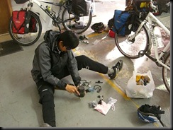 kim修理鍊條超有耐心,運動家的精神,我已經在打電話想其他辦法去大城市,他卻
