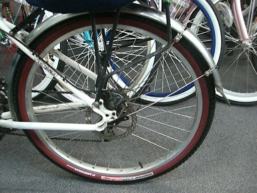 剛好經過一間腳踏車店,去調整後輪碟煞,店員跟我說後輪外胎該換了,我才發現竟然