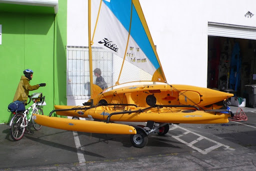 翼還有副艇可以輔助平衡,我想腳踏車放上去一定很穩當,而且可以做非常長途的旅行