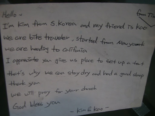 Kim跟我說:「肚子飽、有爐子、買到韓國菜、食物滿滿、腳踏車修好。一切狀態都很棒!