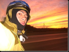 天還沒亮就出發,把昨天沒上完的班補齊。大約六點半日出了,很漂亮,不過拍起來像