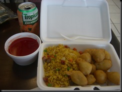 花費金額:6元(1.07元麥當勞蘋果派,4.7午餐中國餐廳酸甜豬肉炒飯)。