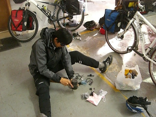 kim修理鍊條超有耐心,運動家的精神,我已經在打電話想其他辦法去大城市,他卻