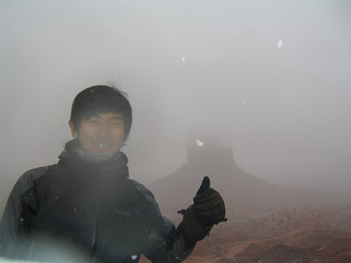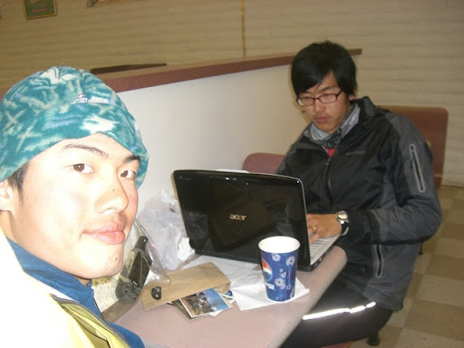 我當場笑翻!抬頭一看,外面風雪更大了。原來Kim堅持想要等到雲散雪停,在遊客中心