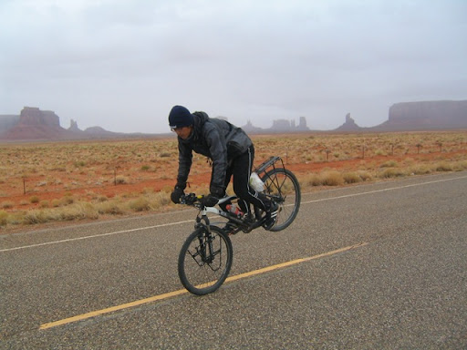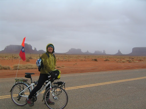 ,他跑步橫越美國的時候。我們騎在這段應該多照點的...