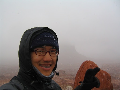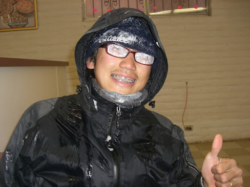 於是我覺得霧濛濛的一片,加上雪越下越大,我的裝備又不是很齊全,基於多年登山社